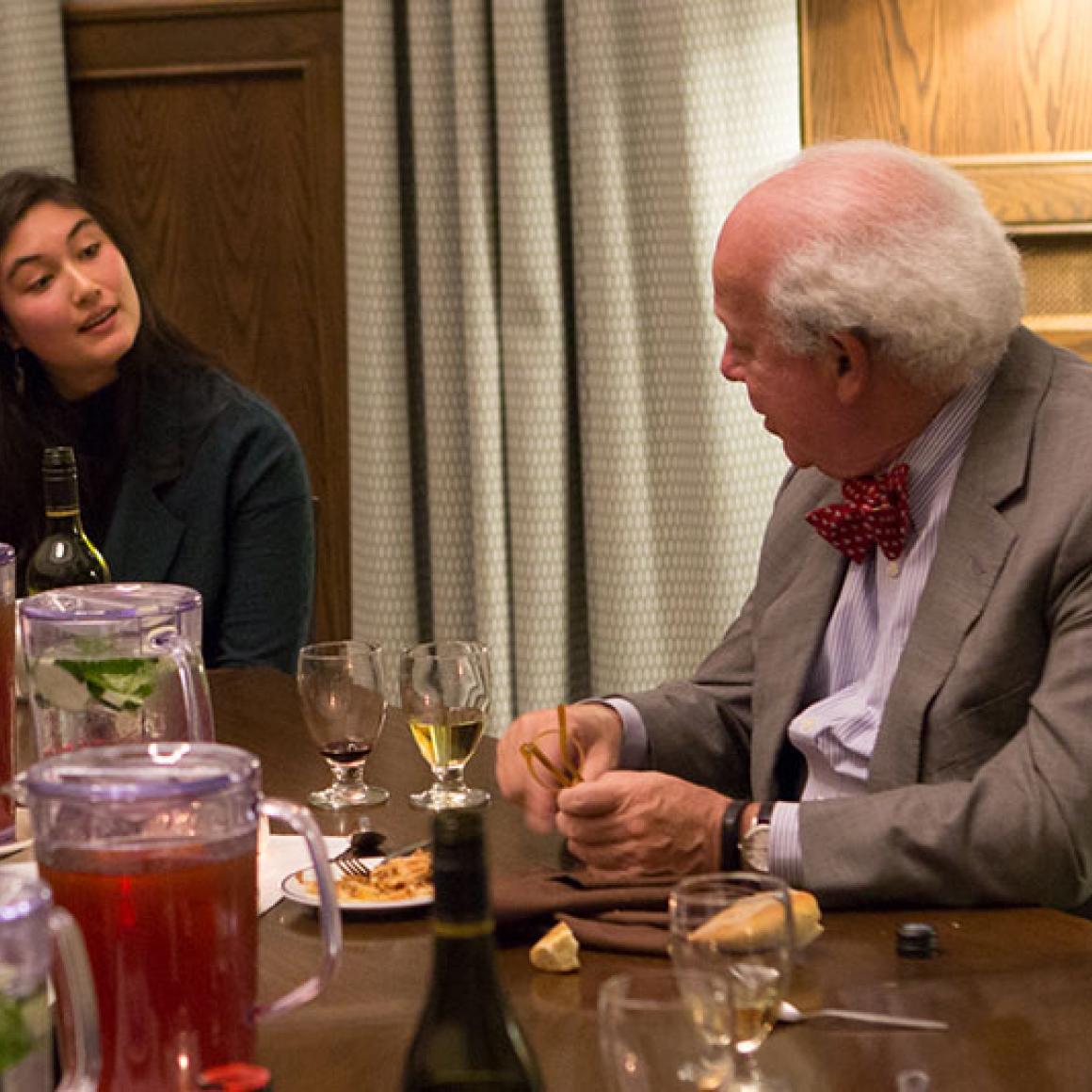 On November 21, 2015, John Streicker '64 shared dinner and conversation with Princeton undergraduates who had interned and conducted research around the world this summer as the University's first cohort of Streicker Fellows.